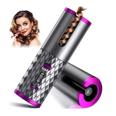 Cordless Automatic Hair Curler Curling Iron with LCD Temperature Display and Timer 3 Adjustable Temperature USB Rechargeable Dry