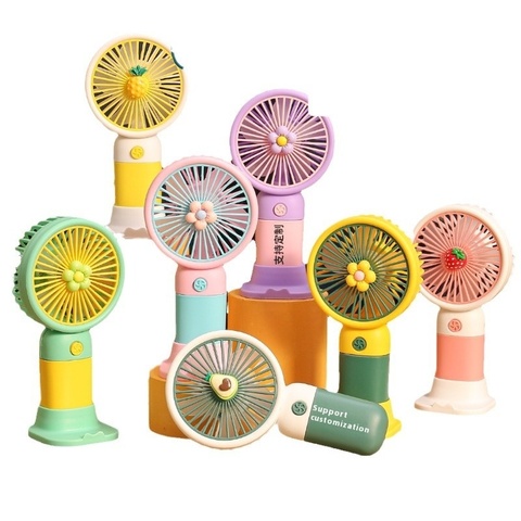 Mini ventilador de mano de dibujos animados recargable por USB portátil para niños de larga resistencia, mesa silenciosa de tres velocidades, refrigeración por aire plegable perfecta